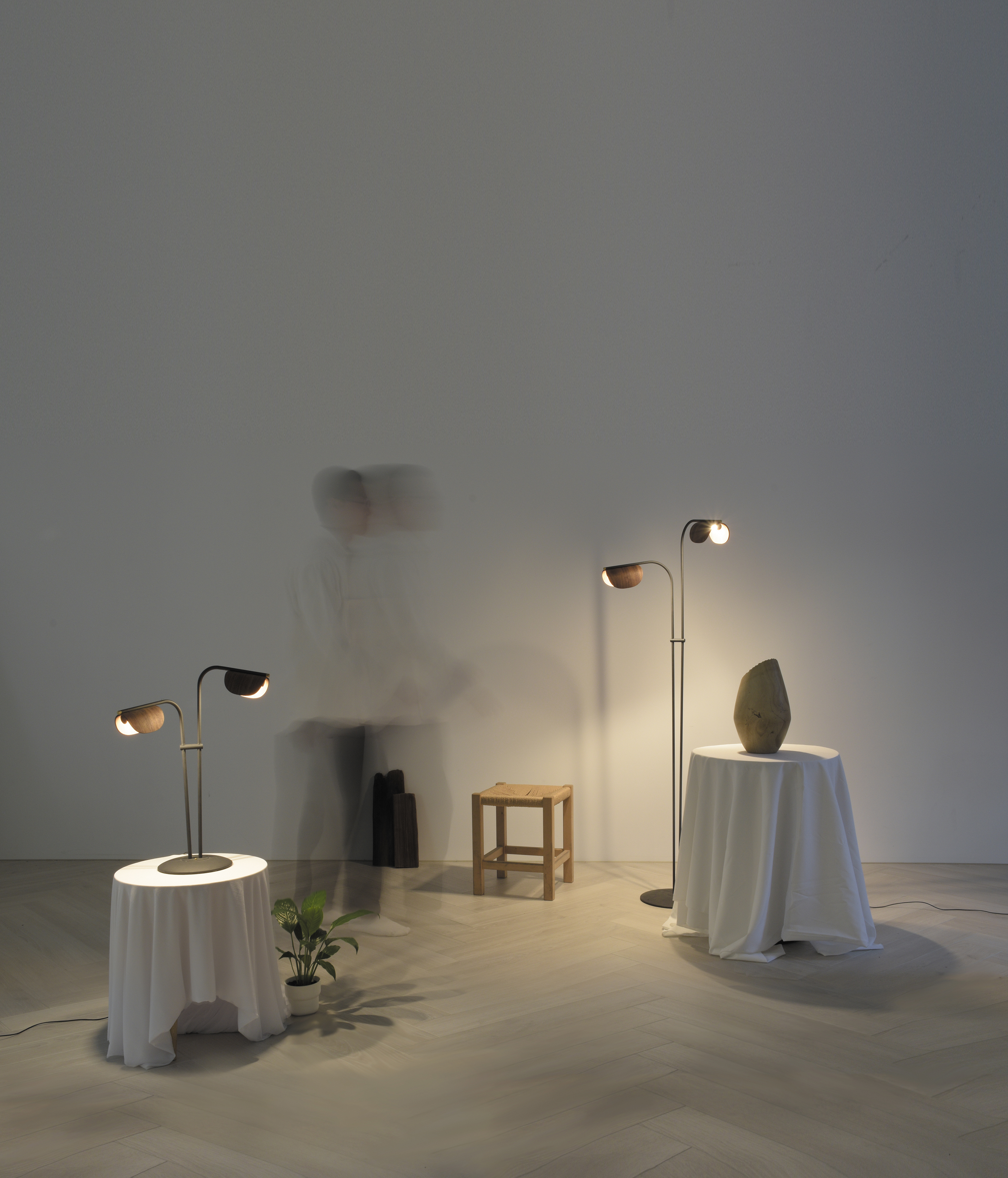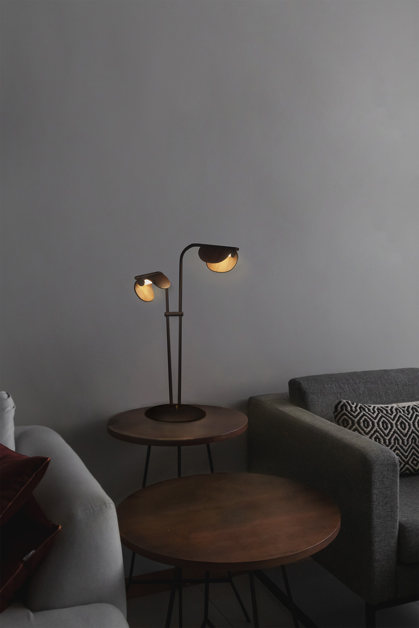 透過木燈罩角度的調整和觸控調光為空間創造出新的功能及變化。