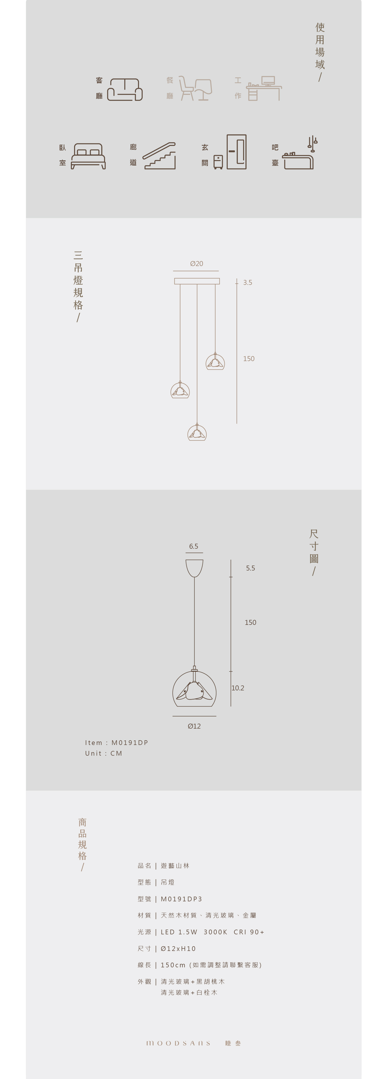 尺寸 | Ø12 x H10 / Ø20 x H3.5 (吸頂盒)